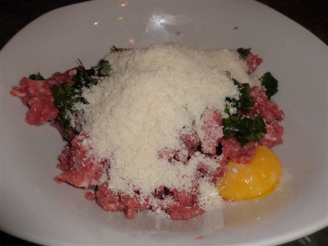 In un recipiente preparate il ripieno, mescolando la carne trita, la salsiccia, il parmigiano, il pan grattato, le uova e il prezzemolo. Fate smollare a parte il panino nel latte, poi incorporate al resto. Salate e pepate.