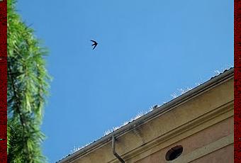 Alcune immagini scattate dal giardinetto extracomunitario hanno colto una rondine o due in volo, ma evidenziano la presenza di flora spontanea sul tetto dell'edificio, analoghe segnalazioni riguardano la Chiesa di San Pietro. Se da un lato la presenza della flora ci ricorda che anche la natura ritiene di avere ancora qualche diritto sulle opere dell'uomo dall'altro alto in questi casi non ha scelto il posto migliore per esternare la sua presenza. In altre parole: una buona manutenzione degli edifici è sempre consigliabile