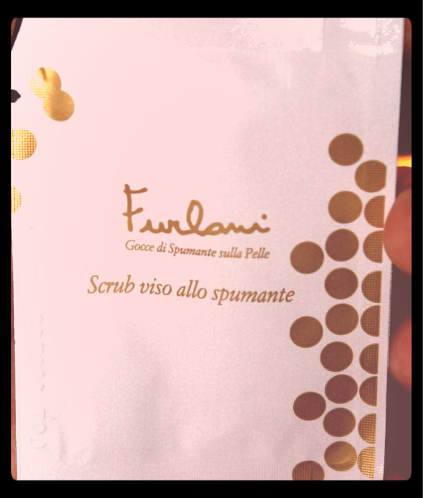 Sccessivamente faccio bollire l'acqua in una pentola capiente , la verso in una bacinella e ci metto dentro una bustina di camomilla . Faccio i vapori rimanendo in posa tra i 5-7 minuti e poi tampono con un asciugamano morbido e ben pulito. Dopo aver asciugato il viso faccio uno scrub e utilizzo Scrub viso allo Spumante della Furlani