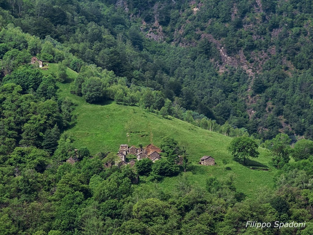 Di lassù la vetta del Mottarone spuntava come un grosso pandoro spolverato di zucchero a velo, così si mostrava ai loro occhi incantati e pieni di magia l'ultima neve di primavera.Altri piccoli nevai scintillavano dalle zone più in ombra e una lucentezza azzurrina oltre la cima richiamava le calme acque del Cusio incastonate laggiù tra quelle pendici che conducono nella valle del Sesia.Come guanciali verde smeraldo i dolci declivi del Vergante gettavano occhiate di sole verso le fresche acque del Verbano, mentre l'oggetto volante spariva alcuni istanti in una nube di vapore per affacciarsi poi nuovamente travolto da una pioggia di sole accecante nel vuoto dell'ampio cielo.Nuove pennellate d'azzurro ed ecco il Montorfano, sipario tra la piana di Fondotoce e la nuda terra d'Ossola somigliante ad una foglia d'acero; lontane le fulgide cime imporporate del Mischabel governavano quell'immobile silenzio. Un urto e la bussola puntò ad est dove come un grosso cavolo verde attorcigliato da forre e cenge da briganti c'era la Val Grande. Terra di silenzi e volti duri scolpiti nel legno e di gente che non teme la fatica che spacca le mani.Il vento li sospinse in quella coltre di nubi basse affumicate che ribollendo ricordavano un pentolone di patate, lasciando solo a tratti immaginare le sue profondità grigie, muschiose e tetre.Un “cielo incomprensibile che non si capiva se fossero nubi o soltanto nebbia al di là della quale il sole, forse…” appellandoci alla sensibilità di Dino Buzzati.Quel cielo che sembrava disceso sulla terra. Squarci azzurri alternati a nuvoloni scuri regalavano fresche ombre riparate dal fitto fogliame; regno di gheppi, camosci, aquile e vipere.Qui si è soli pensò Cesare davanti a quel “nulla” così sterminato, imprigionato in una bolla aldilà del mondo e del tempo. Fantasticava: sì potrebbe restare per ore, giorni o settimane nascosti tra i rami, come un buratt, ad osservare da lontano qualche sporadico escursionista transitare, senza essere visti, come fanno gli animali della giungla. Perché la grande valle assume un'infinità di sfumature e come un libro di Salgari dimenticato in una balma, il vento si insinua, sfoglia le sue pagine e narra di mondi lontanissimi.