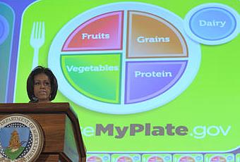 Nel tentativo di incoraggiare una sana alimentazione, Michelle Obama e la USDA hanno elimiatola temibile piramide alimentare e lo ha sostituito con un semplice, un semplicissimo piatto. (in foto).