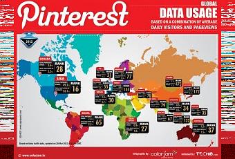 In Italia, come dicevamo prima, Pinterest è il 43° sito più visitato, dato che viene fuori dalla combinazione tra i visitatori quotidiani e le pagine consultate. Il 3% degli utenti complessivi su Pinterest sono italiani che generano i 3,1% delle pagine consultate. Un dato quello italiano che si allinea alla media degli altri paesi come Francia e Germania. Dati comunque interessanti quelli riferiti al nostro paese che vanno a completare quelli che avevamo già riportato il mese scorso, riferiti al numero di visitatori unici al mese quantificabili tra 30-40 mila al mese.