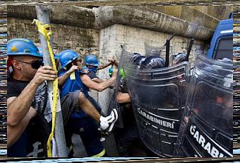 Gli operai si sentono traditi e delusi da chi dovrebbe rappresentare le loro ragioni e difendere il loro posto di lavoro e giungono a Roma per gridare in piazza tutta la loro rabbia! Stefano Fassina, responsabile per l'economia e il lavoro del Pd, è stato aggredito da alcuni manifestanti proprio sotto al ministero dello Sviluppo Economico. Fassina stava rilasciando un'intervista quando alcuni operai si sono avvicinati gridando "bastardi ci avete deluso" e poi lo hanno spintonato. Scortato dalle forze dell'ordine Fassina è stato costretto ad allontanarsi inseguito da un gruppetto di operai che gli urlavano contro. Ma ce n'è pure per il ministro del lavoro: "Fornero al cimitero". E' questo lo slogan urlato dagli operai sardi dello stabilimento Alcoa e del Sulcis! I lavoratori continuano incessantemente a lanciare verso il ministero ed in strada petardi, fumogeni e bombe carta! In molti indossano magliette nere dalla scritta 'Disposti a tutto'. Momenti drammatici e di tensione, scontri tra forze dell'ordine e manifestanti, fitto lancio di "mini lamine di alluminio" e bottiglie contro le forze dell'ordine da parte dei manifestanti. Ogni tanto si sentono esplosioni di petardi e bombe carta. Le forze dell'ordine hanno risposto manganellando alcuni partecipanti alla manifestazione poi sono iniziati gli scontri. Feriti dall'una e dall'altra parte! Gli operai dopo i lanci di bottiglie e le cariche si sono fermati con le mani alzate e hanno urlato 'Vergogna'. Quelle piccole lamine di alluminio sono la loro vita. E con quelle oggi hanno "combattuto" lanciandole durante gli scontri davanti al Ministero per lo sviluppo Economico. "Sono le armi con cui difendiamo il posto di lavoro", dicono gli operai dell'Alcoa. Prima le hanno disposte davanti al ministero, le piccole lamine tondeggianti, quasi a farne un tappeto. Volevamo far vedere cosa è il nostro lavoro - dice un'operaio - cosa difendiamo, l'anima di tanti giorni, mesi, anni di fatica. Una fatica che amiamo e che ora rischiamo di perdere". Su ogni mini lamina c'é una cifra che indica la colata, una specie di 'codice genetico' del materiale che indica il tipo di composizione e la quantità dei composti. "Questi 'provini' (così si chiamano tecnicamente) rappresentano gli operai Alcoa - aggiungono i manifestanti - siamo noi e ciò che difendiamo".