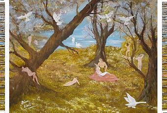 Dino Licci-Ninfe-acrilico su tela 100X80La religione romana è un coacervo di usi e costumi evolutosi in un arco di tempo di ben dodici secoli, per quella peculiarità di Roma di inglobare nella propria sfera le abitudini dei popoli che andava conquistando. Ciò dava luogo a quel sincretismo religioso che si manifestava poi in molteplici pratiche culturali che si arricchivano nel tempo e che possiamo riassumere in tre fasi: L’Età arcaica caratterizzata da una religiosità di tipo agreste e tipica dei culti di tipo mediterraneo. Si veneravano Cerere, Fauno, Saturno, Giano bifronte e quindi i Lari, spiriti dei campi associati agli antenati che quivi venivano sepolti ed i Penati, i numi tutelari della casa e del focolare che si accostavano a Vesta, la dea il cui fuoco sacro le famose Vestali dovevano tenere sempre acceso.Con l’età repubblicana Roma acquisì la quasi totalità delle divinità greche ed etrusche cosicché Zeus diventò Giove, Afrodite Venere, Atena si trasformò in Minerva e poi Efesto in Vulcano, Poseidone in Nettuno, Era in Giunone e così via. Ma se Roma importava divinità nuove, vigilava pure che i culti stranieri non costituissero un pericolo sociale più o meno latente. Così accettò Apollo ed i Dioscuri mentre proibì i baccanali e soprattutto il culto di Dioniso. Gli dei romani erano fortemente coinvolti nella vita pubblica e vi erano dei sacerdoti atti a celebrare sacrifici e riti propiziatori. Inoltre religione e politica erano fortemente connesse e forse questo portò ad una crisi religiosa che s’intensificò soprattutto nell’ Età imperiale quando, dopo l’introduzione di divinità medio-orientali quali Cibele, Iside, Mitra e le critiche mosse alla religione tradizionale da parte di correnti filosofiche ellenistiche ed orientali, la religione pubblica apparve priva di quei significati escatologici (vedi la comparsa dell’anima) che invece cominciavano ad affiorare in altre civiltà. Intanto si faceva strada il culto imperiale prima con la divinizzazione post -mortem di Giulio Cesare ed Ottaviano Augusto, poi con l’assimilazione del culto del Sole a quello dell’imperatore, per sfociare infine nella teocrazia diocleziana: ogni moneta portava impressa l’immagine dell’imperatore mentre sul lato opposto erano incisi i segni del suo immenso potere.