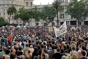 Il loro grido inizia con "Vera Democrazia! Non siamo nelle mani dei politici e bachieri!". La crisi ha devastato la penisola iberica e i giovani vogliono sentire risposte dai propri politici.