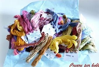 Avendo acquistato tutta la gamma dei Perlé n. 12 non potevo rinunciare poi al perlé n. 8 sempre della House of embroidery ( 279 matassine da 8 m. l'una, raggruppate in confezioni di tre colori in gradazione ), perchè di solito li uso abbinandoli sopratutto nei ricami ad hardanger.