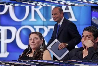 (foto tratta dal sito de Il Fatto Quotidiano)Non era stato sufficiente il funerale scandalo di Vittorio Casamonica, ieri sera due persone appartenenti al clan sono stati i protagonisti del Porta a porta di Bruno Vespa (qui). É vero che in studio c'erano due giornalisti che hanno cercato di riportare alla realtà quanto dicevano la figlia e il nipote di Casamonica, ma la differenza di registro tra le due "parti", portava a dare più risalto alle fantasiose argomentazioni dei familiari del boss - il vero spettacolo - che alle razionali e anche un po' stupite repliche di Fiorenza Sarzanini (Corriere della Sera) e Virman Cusenza (direttore del Messaggero). Insomma, una brutta serata di televisione, che Bruno Vespa ha voluto confezionare, immaginiamo, anche (o solo) per fare concorrenza alla puntata di Ballarò, che ieri sera riprendeva su Raitre dopo la pausa estiva. La corsa all'accaparramento del pubblico e del connesso mercato pubblicitario, come si sa, ha abbassato di molto la qualità del prodotto televisivo, ma nessuno, penso, avrebbe immaginato che Vespa potesse arrivare a tanto. Ora, probabilmente, verranno fuori interrogazioni parlamentari e una seduta ad hoc della Commissione parlamentare di Vigilanza Rai, salvo poi continuare tutto come prima.