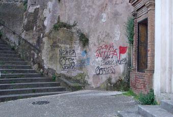 LA SUGGESTIVA SALITA A SAN PIETRO IN MONTORIO DEVASTATA DAI VANDALI CON LA BOMBOLETTA E TRASFORMATA IN PISCIATOIO PUBBLICO. IL CALVARIO DEI TURISTI