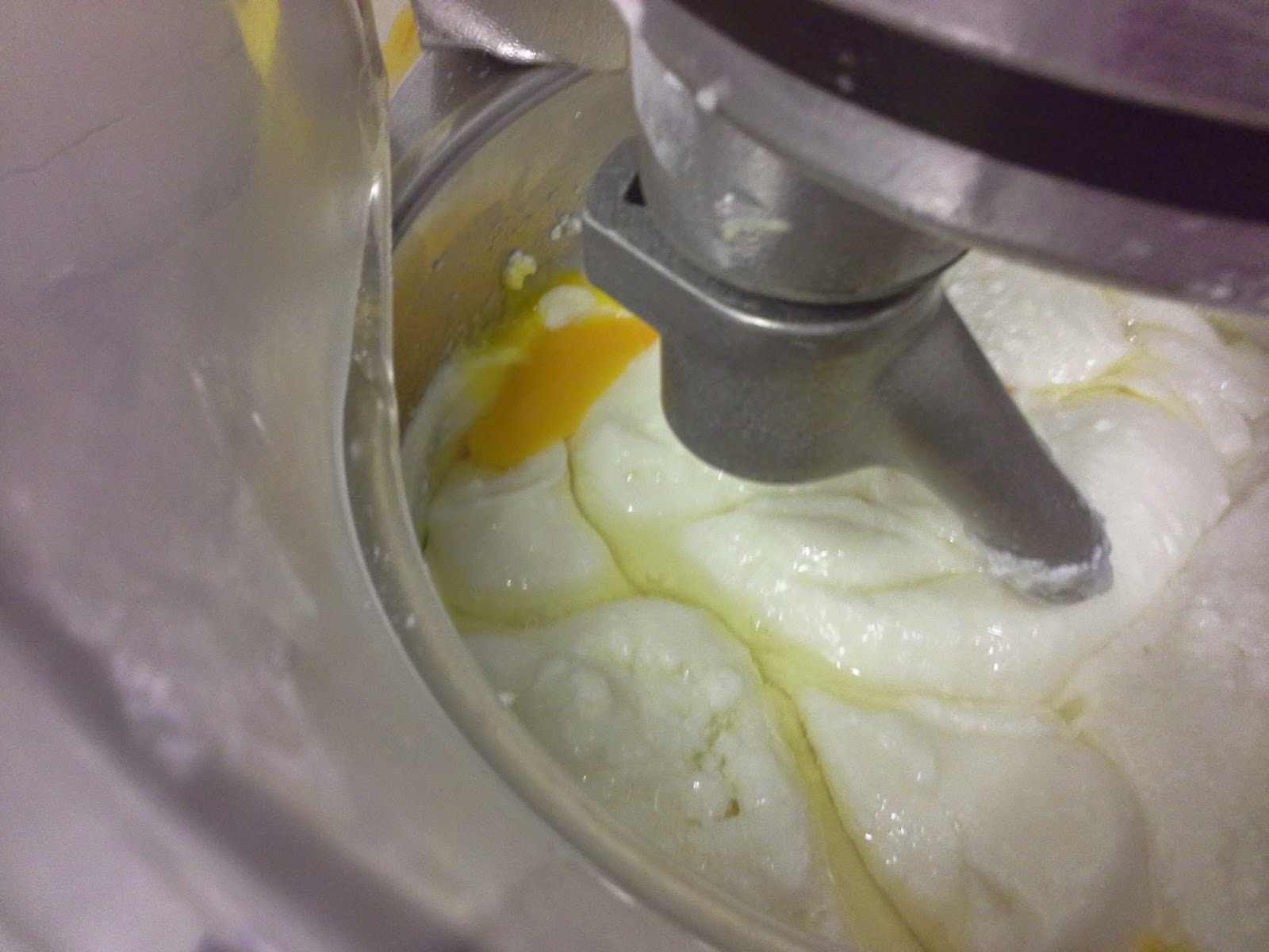 e l'ho lasciato raffreddare al fresco. Nel frattempo ho preso le ricotte e le ho messe nel contenitore della planetaria, che sarebbe un frullatore professionale un pò più grande di quelli domestici