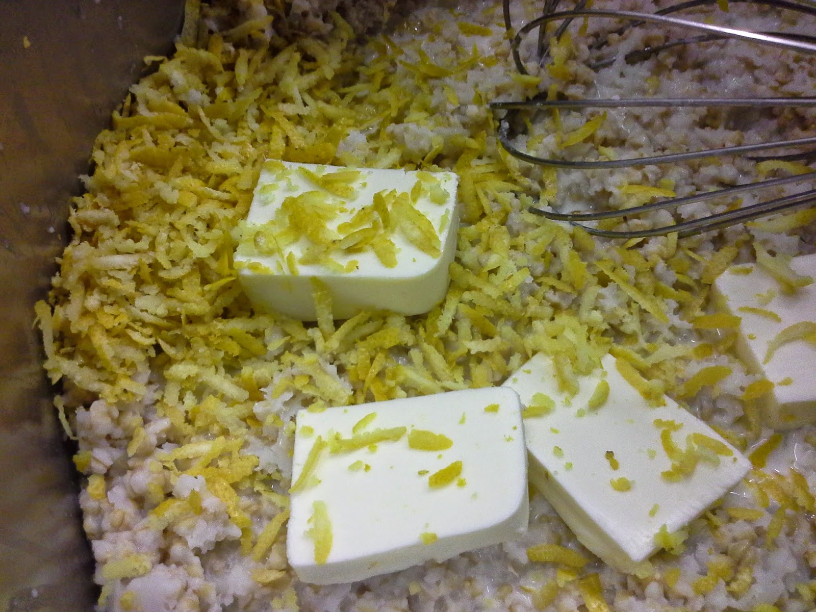 e infine grattugio i limoni grossolano , mi piace che si sente il pezzettino di limone in bocca quando si mangia la pastiera.