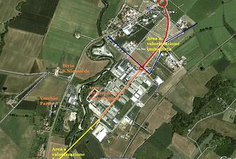 Se guardiamo la mappa ci rendiamo conto che la rotatoria in realtà è un termine riduttivo rispetto all'opera complessiva (segnata in colore rosso nella mappa) che si avrà alla fine. La classica rotatoria sulla strada provinciale Fidenza-Salsomaggiore (cerchio rosso grande), come dice bene il Sindaco, dovrà trovare completamento in una strada totalmente disegnata in terreno agricolo (che muterà destinazione anche nella restante parte) ed in un incrocio con invito rotatorio.