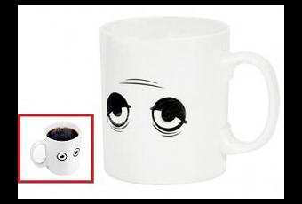 Questa simpatica tazza ha infatti gli occhietti torpidi ed addormentati fino a che la mattina, non le si versa un bel caffè bollente; allora con effetto immediato i suoi occhietti si apriranno di colpo, belli svegli e pimpanti … e a seguire una volta bevuto con calma il caffè lo saranno anche quelli del dormiglione di turno!