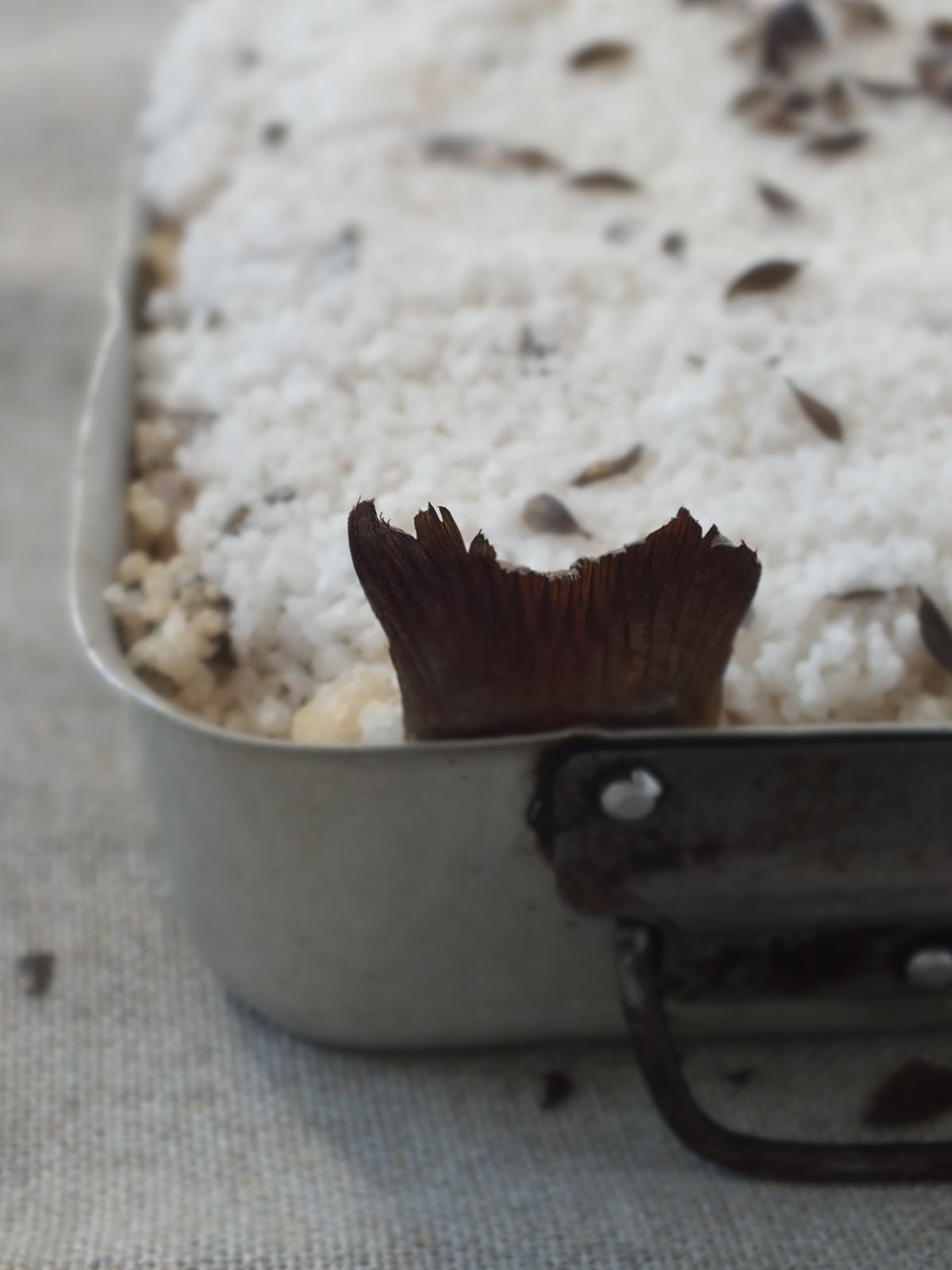 Mio marito mi ha sfidata, mi ha detto che cucino poco pesce perché forse non sono capace.Dir la verità mi è innaturale cucinarlo, oggi che c'è solo 1°, ancora di più.A casa mia non abbiamo mai mangiato tanto pesce, un male lo so, il massimo che si mangiavano erano le trote che si andavano a pescare.Quindi, forse, devo dare ragione a mio marito, non adoro cucinare il pesce, ma con questo non vuol dire che non sia capace. Giusto?Se non voglio sbagliare lo cucino sotto sale, una tecnica antichissima, perfetta per chi è a dieta, ma non di quelle iposodiche.La regola importantissima è che il pesce deve essere freschissimo; infatti il sotto sale crea una sorta di sottovuoto in cui il profumo del pesce e degli aromi rimangono all’interno. Come tipi di pesci potete utilizzare quelli di taglia grossa a polpa bianca come l'orata, la spigola, il sarago, il branzino.Incominciate a lavate il pesce, eliminate le viscere ma non squamatelo.Accendete il forno a 220° / 250°, e su una teglia, mettete del sale grosso, poi il pesce e altro sale, fino a coprire per bene il tutto. Questo metodo è raccomandato se usate il sale integrale già umido di per se; altrimenti se usate il sale grosso raffinato potete o inumidirlo con dell'acqua o amalgamarlo con un albume montato a neve. (1 kg : 1 albume).Per la cotture, io di solito calcolo 25/30 minuti per kilo di pesce, naturalmente non poterlo vedere non aiuta, ma c'è chi dice che un trucco per sapere se il pesce è cotto è quello di controllare se l'occhio è diventato bianco, quindi lasciatelo scoperto.Il sale potete utilizzarlo puro o profumarlo con qualche spezia, io per il branzino della foto ho utilizzato del mirto; se volete, potete imbottire il pesce con il odori e lasciare il sale al naturale.A voi la scelta.