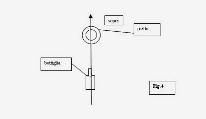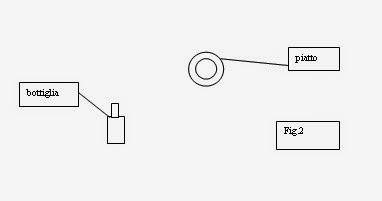 E scrivere seguendo la freccia IL PIATTO STA SOPRA LA BOTTIGLIAE’ evidente che in tutti questi passaggi si è operato una cancellazione (tutti gli oggetti ad eccezione di piatto e bottiglia) e una deformazione di posizione. Ma non solo; se si pensa che il primo disegno non rappresenta certo la porzione di mondo: sono assenti le ombre, le luci, i colori, l’ambiente ecc. Cancellazioni e deformazioni sono operazioni violente (produttrici di perdite) funzionali allo scopo del modello linguistico (Enunciato) e in quanto alla raffigurazione o immagine logica, tutto sta in cosa s’intende per “logica” A prima vista il modello enunciato sembra una’immagine logica’ non della porzione di mondo ma, al massimo di quanto presente in fig. 4. E’ tuttavia, almeno a mio avviso,’ evidente come il modello enunciato presuppone oggetti e fatti digitali in corrispondenza di nomi e proposizioni digitali, quando invece la porzione di mondo appare analogica.