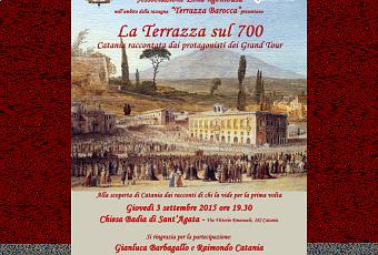 Nell’ambito della rassegna “Terrazza Barocca”, organizzata dalla Chiesa Badia di Sant’Agata e dall’Associazione Etna‘ngeniousa, giovedì 3 settembre 2015 alle 19.30, la Terrazza della Chiesa Badia di Sant’Agata diventerà “Terrazza sul 700 – Catania raccontata dai protagonisti dei Grand Tour”.