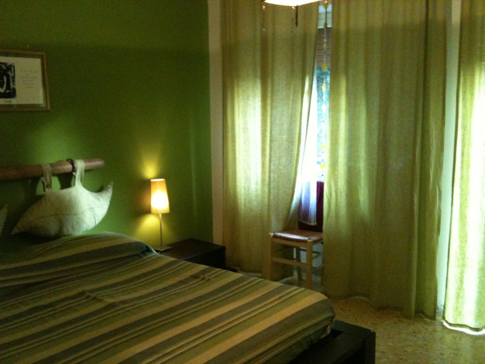La testata del mio letto è stata fatta con una canna di bambù trovata fuori da un negozio che l'aveva usata per l'allestimento della vetrina.Ho cucito e disegnato due foglie che fanno da poggiatesta e ho attaccato una litografia fatta regalatami da un'amica.