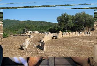 tumulo, gli scassi operati con un mezzo meccanico. Il monumento che può essere inserito tipologicamente tra le tombe di giganti ortostatiche di tradizione dolmenica, si contraddistingue per le evidenti asimmetrie nell'andamento delle sue murature. Il corridoio è stato edificato su un terreno caratterizzato dalla presenza di banchi rocciosi affioranti, dei quali i costruttori hanno dovuto tenere conto nella realizzazione delle parti murarie. La tomba ha una lunghezza di 20, 20 m e il corpo principale ha una larghezza che varia da 8,5 m nella parte antistante a 2,5 m sul fondo. Il corridoio é lungo 9 m, alto 1,5 m e largo 1 m. L'ingresso si restringe fino a 43 cm con lo stipite destro in posizione inclinata verso ovest. Presenta una muratura ottenuta con lastroni infissi a coltello alternati a grandi blocchi disposti a filari ed è chiuso da una lastra sommariamente spianata. La copertura è realizzata con lastre tabulari, alcune delle quali, rinvenute spostate, sono state ricollocate, mentre parti di altre sono state ritrovate sparse nell'area di scavo. Un grande monolito trapezoidale è stato rinvenuto rovesciato davanti all'ingresso. L'esedra, orientata a sud-est, è costituita da due bracci che si dipartono dalla metà degli stipiti, ha una corda di 14,83 m e una freccia di 4,77 m. I lastroni,12 per lato, sono sostenuti da un muretto di piccole pietre disposte a formare delle ali in muratura che raccordano i blocchi.