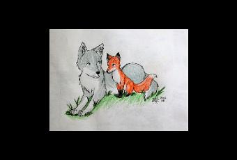 Dopo aver molto girato senza aver trovato niente la volpe disse al lupo: - Lupino, ho fame, vieni con me a mangiare qualcosa?