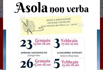 Dal 23 gennaio al 5 febbraio 2015, Moda e innovazione alle Officine Cantelmo a Lecce con il laboratorio “Asola, non verba!”. Il progetto vuole raccontare concretamente come un’impresa nel campo della moda può diventare sinonimo di successo analizzando quali sono i primi passi per rendere un prodotto innovativo e quelli successivi per la realizzazione di un brand che possa trovare una giusta collocazione sul mercato. Per questo, a lezione si troveranno personaggi come Gianni Calignano, Adriana Santanocito, Fabio Attanasio, Alessandra Chiara Guffanti, cresciuti nel mondo del Fashion, esempi concreti di chi ce l’ha fatta, che forniranno input ed ispirazione per rendere poi possibile la creazione di un network di collaborazione e comunicazione tra partecipanti del progetto. Se da una parte la crisi distrugge, dall’altra porta la forza di sopravvivere puntando al progresso e creatività con Start-Up, idee, team motivati. codici di programmazione, semi biologici, nuovi tessuti, materiali innovativi.
