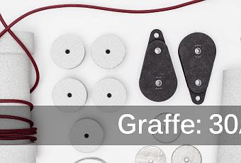 30/70 è il rapporto tra il volume di materiale solido (30%) e il volume d’aria (70%) del calcestruzzo aerato autoclavato (AAC), materiale da costruzione prefabbricato leggero e resistente.Graffe, laboratorio di design a metà tra l’impresa creativa e l’officina produttiva, ha chiamato 30/70 la sua collezione di lampade a sospensione ricavata dal blocco standard di calcestruzzo.I blocchi bianchi vengono prima squadrati e poi lavorati con un tornio da legno per realizzare tutti i componenti: la lampada è composta da un paralume, un contrappeso e un rocchetto in calcestruzzo su cui avvolgere il cavo in eccedenza, oltre che dal cavo ricoperto in tessuto (9 mt per la lampada grande e 4 mt per la piccola) e da una o due carrucole in HPL (High Pressure Laminate) che muovono la luce nello spazio. Il legame con l’aspetto originario del modulo è parte integrante del progetto, le superfici porose bianche ne sono l’identità.