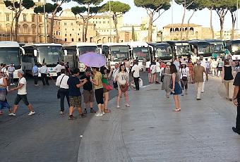 Larghe intese. Ecco a cosa è servita la pedonalizzazione dei Fori: a creare un mega parking abusivo per i bus dell'esercito di Sivlio Berlusconi