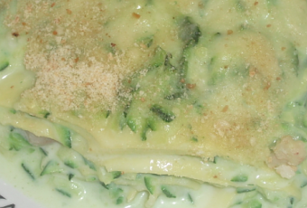 4) Se volete sbollentate la pasta e iniziate a comporre le lasagne: iniziate con un lieve strato di salsa (per evitare che si attacchi), poi le lasagne, la salsa e così via, siano all’ultimo strato in cui, sopra le zucchine, metterete anche formaggio grattugiato e pan grattato.