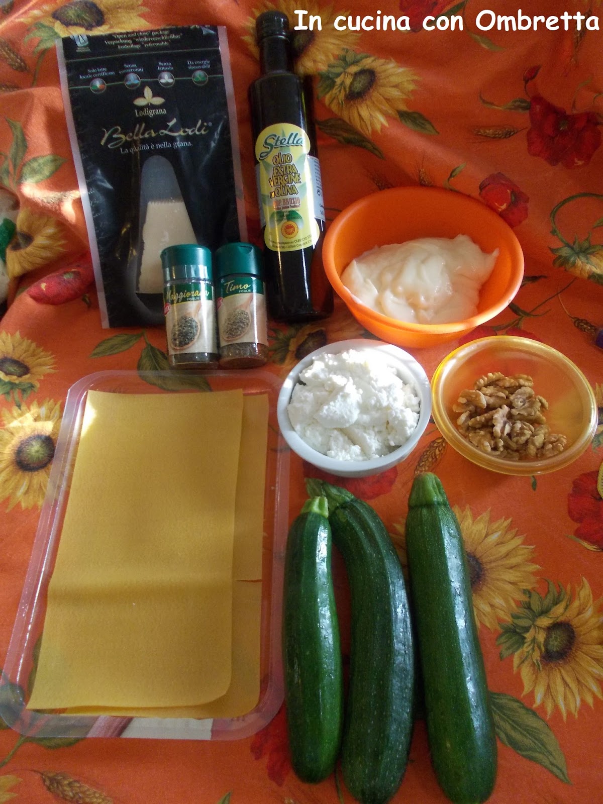 Sopra lo strato di pasta metteteci uno strato di zucchine,spolverate con le noci.