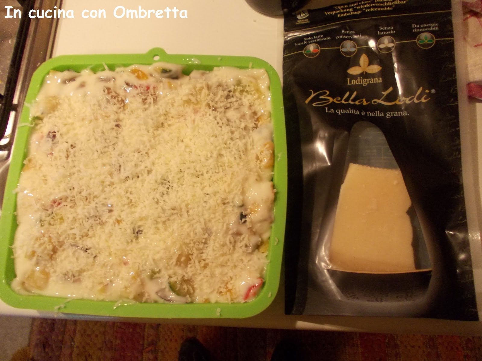 Preparatevi la besciamella in un recipiente ,versatene un velo sul fondo della pirofila e coprite con uno strato di pasta. Mescolate le verdure grigliate con la besciamella rimasta,e distribuite una parte sulla pasta,continuate a strati fino ad esaurire gli ingredienti.Ad ogni strato regolate di sale e spolverate abbondantemente con il grana,che sarà anche l'ultimo ingrediente che ci sarà in superficie.Coprite la pirofila con un foglio di alluminio e cuocete le lasagne in forno caldo a 180° per 20 minuti,togliere l'alluminio e cuocere per altri 10 minuti o finché nella superficie non si sarà formata una crosticina dorata.Se volete potete prepararla anche il giorno prima:toglietela dal forno dopo i primi 20 minuti di cottura,fate raffreddare e tenetele in frigorifero.Prima di servirle,mettetele di nuovo in forno a 190 per 15 minuti.