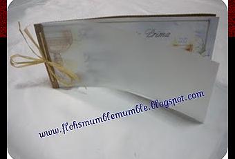 Erano semplici inviti di quelli venduti a blocchetto, a cui ho aggiunto una "copertina" di carta ondulata, una di carta da lucido e ho legato tutto insieme con un filo di rafia. Semplici, ma mia sorella ha gradito.