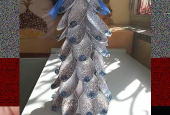 Simpatico alberello di Natale realizzato con riciclo di cucchiai di plastica.