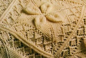 La coperta di lana bianca il cui motivo è lavorato come un vecchio pizzo è realizzata con i ferri ed è formata da quadrati, con un motivo di foglie centrali contornate da piccoli rombi traforati. Potete confezionare la coperta nella dimensione che vi è più utile.