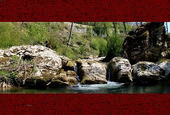 Le acque rumoreggiano lievemente tra i massi di arenaria.
