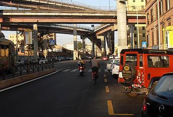 Ma spazio per recuperare c'è, infondo una bike line è bella proprio perché è realizzabile solo congegnando bene la segnaletica. Si tratta dunque di cancellare queste strisce e di farne altre (possibilmente blu per le auto) lasciando tra la sosta e il marciapiede una 'intercapedine ciclabile' sul modello di Via Portuense. Coraggio! E piantatela di farci fare una fatica immane (denunce, diffide, articolacci) per ottenere cose che dovunque sono la norma: le ciclabili leggere dovrebbero essere la normalità, potrebbero regalarci migliaia di percorsi per bici e soprattutto, in una città con le dimensioni delle carreggiate tutte sbagliate, potrebbero servire a fare una pulizia incredibile a costo zero e con vantaggi per tutti meno che per gli animali che sostano in doppia fila. Cosa aspettiamo a cambiare faccia a questa città specie in comparti dove lo si può fare senza spendere nulla?
