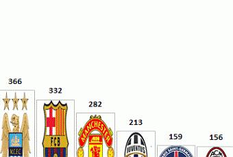 L'ultima squadra sopra i 300 milioni è poi il Barcelona. Di seguito la tabella completa con i valori per squadra ed il peso percentuale sul totale.