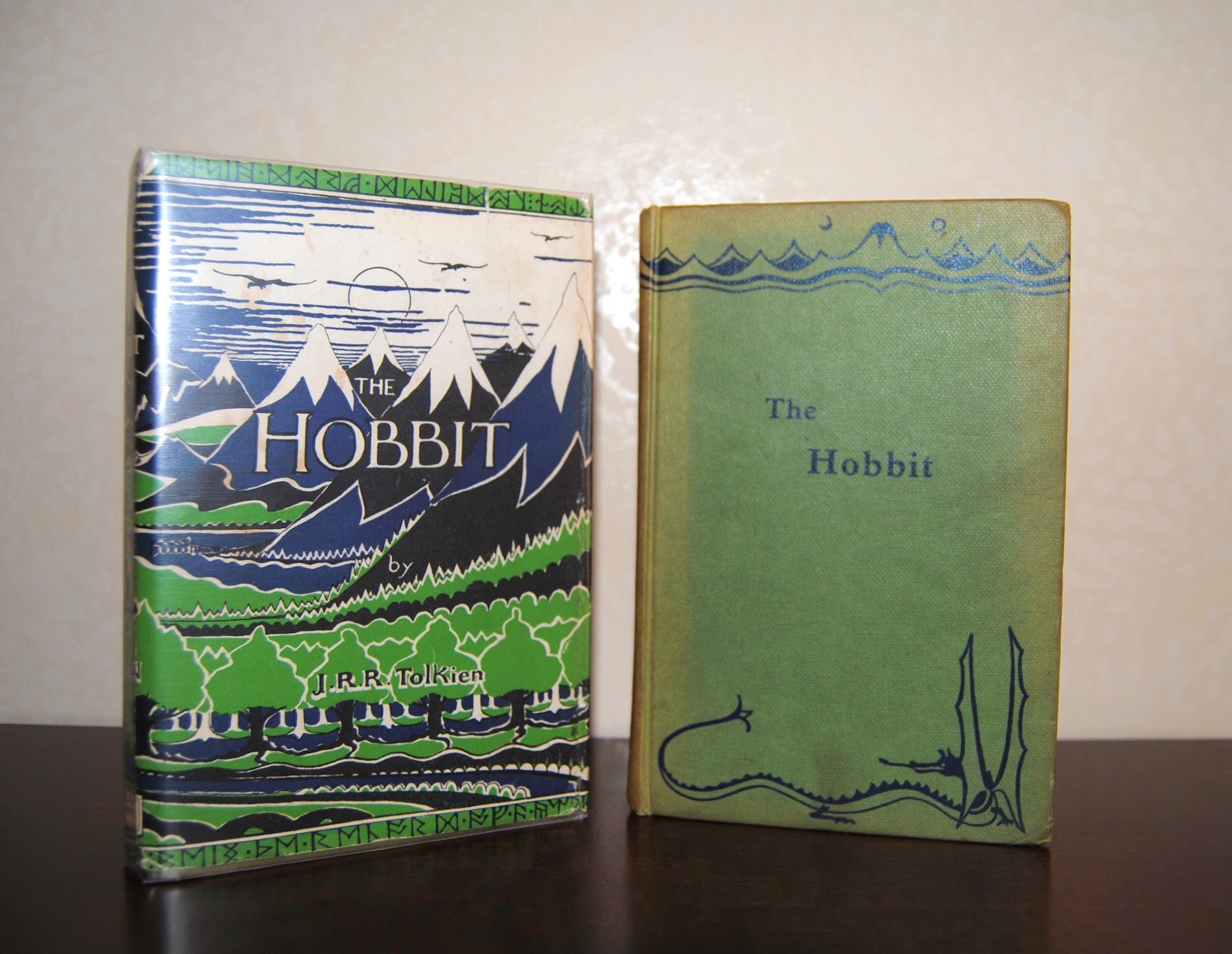 Le diverse edizioni de Lo Hobbit che riproducono la sovraccoperta del 1937 presenti nella mia collezione