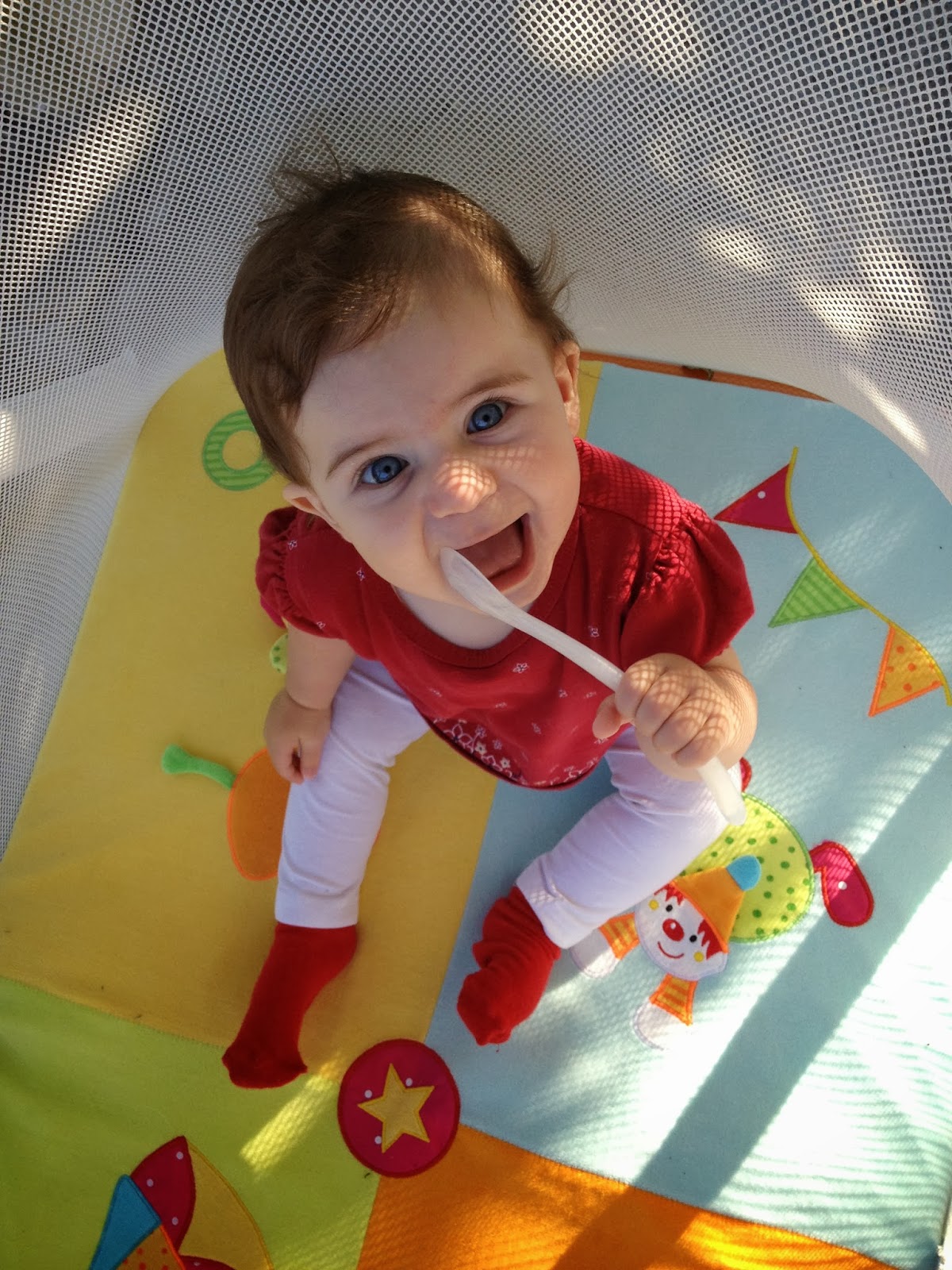 Come premio alla mamma ho fatto uno sforzo grande grande e indovinate un pooooooò? Meglio tardi che mai... ho tirato fuori il primo dentino. Non commentate. Non voglio sapere quanti ne avete voi, le vostre figlie, cugine, sorelle soprattutto se più piccole di me.