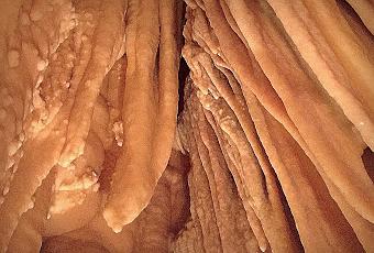 Proseguiamo il cammino attraversando il “salotto” ed ammirando formazioni di stalattiti e stalagmiti formatesi in decine di migliaia di anni. E’ sufficiente pensare che uno spuntone di calcare della grandezza di una penna o una sigaretta impiega circa 100/150 anni per formarsi. Rapiti dalla ricchezza e varietà di concrezioni naturali che variano di colore, dal bianco al rosso (per gli elementi di cui sono composte carbonato di calcio, alabastro, manganese, ferro) ecco che ci troviamo nel “corridoio delle impronte preistoriche” dove mani, piedi e ginocchia dell’uomo del Paleolitico superiore sono ben visibili, impresse nelle rocce calcaree a testimonianza della presenza umana sin da tempi lontani.