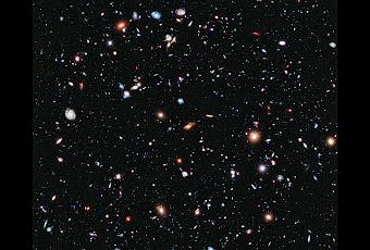 Uno sguardo in una piccola parte del cielo, un grande balzo indietro nel tempo. Il telescopio Hubble ha fornito più profonda del genere umano, vista più dettagliata visibile dell'universo. Rappresentando una stretta vista "buco della serratura" che si estende fino all'orizzonte visibile dell'universo, il Deep immagine Campo Hubble copre un granello di cielo solo circa la larghezza di un centesimo 75 piedi di distanza. Anche se il campo è un campione molto piccolo dei cieli, è considerato rappresentativo della tipica distribuzione delle galassie nello spazio, perché l'universo, statisticamente, sembra in gran parte la stessa in tutte le direzioni. Guardando in questo campo piccolo, Hubble ha scoperto un assortimento sconcertante di almeno 1.500 galassie a vari stadi di evoluzione. THE DEEP PROGETTO CAMPO HUBBLE Una giustificazione scientifica fondamentale per la costruzione di Hubble Space Telescope è stato quello di usarlo per misurare le dimensioni e l'età dell'universo, provare le teorie sulla sua origine nel Big Bang, e valutare come la grande struttura possieda grandi filamenti di galassie. Viviamo all'interno di un universo in espansione e in evoluzione. Immagini di galassie distanti offrono indizi "fossili" di ciò che l'universo sembrava quando era una piccola frazione della sua età attuale. Evoluzione delle galassie. La comprensione è un prerequisito per affrontare questioni ancora più fondamentali circa l'espansione dello spazio e il destino ultimo dell'universo. Il progetto campo profondo di Hubble è stato ispirato da alcune delle prime immagini profonde inviate dal telescopio nel 1993 quando venne avviata una missione di manutenzione. Queste immagini hanno mostrato che l'universo primordiale contiene galassie in una sconcertante varietà di forme e dimensioni. Alcuni con le forme familiari ellittiche e a spirale, viste tra galassie normali, ma c'erano molte forme particolari non viste comunemente nell'universo locale. Tali immagini dell'universo precoce sono probabilmente uno dei lasciti duraturi del telescopio spaziale Hubble. Pochi astronomi si aspettavano di vedere quest’ attività presentate in dettaglio incredibile. La decisione Impressionato dai risultati di precedenti osservazioni come l'indagine Medio Hubble Deep, uno speciale comitato consultivo convocato da Robert Williams, direttore dello Space Telescope Science Institute (STScI), ha raccomandato di utilizzare una significativa frazione di tempo discrezionale, nella sua direttrice annuale, per prendere la più profonda immagine dell'universo, puntando Hubble per 150 orbite consecutive su un unico pezzo di cielo. La ricerca si fa come un servizio a tutta la comunità astronomica. Immagini del progetto campo profondo Hubble saranno messe a disposizione degli astronomi di tutto il mondo, dopo il completamento dell'osservazione. Il contesto scientifico Prendere la più profonda immagine è stato l'obiettivo per ogni telescopio spingendo le frontiere del potere di raccolta della luce, la risoluzione, o l'intervallo spettrale. Quando il grande telescopio da 200 pollici Hale sul monte Palomar è entrato in funzione, 50 anni fa, gli astronomi speravano di utilizzare tali osservazioni per fornire prove dirette di osservazione per verificare o confutare l'opinione prevalente che l'universo è in espansione, che lo spazio è "curvo" per gravità , come previsto dalla teoria di Einstein nella relatività generale. La curvatura terrestre può essere dimostrata con attenzione misurando lunghezze e angoli sulla sua superficie, dovrebbe essere possibile verificare che l'universo è curvato con una misurazione accurata della luminosità e delle dimensioni delle galassie. Ad esempio, se galassie erano tutte della stessa dimensione, e sono state distribuite uniformemente nello spazio, allora sarebbe possibile misurare la curvatura dello spazio semplicemente misurando le dimensioni apparenti e confrontando il numero di grandi galassie vicine al numero delle piccole galassie , quelle lontane. All'inizio degli anni ‘60, tali misurazioni sembravano a portata di mano di telescopi terrestri. E’emerso che questi test non sono così semplici come previsto. La luce che ci giunge oggi da galassie lontane miliardi di anni fa, li stiamo vedendo in un momento quando erano più giovani. Per eseguire prove geometriche sulla curvatura dell'universo, è essenziale saper come cambiano galassie quando invecchiano. Le idee più semplici per l'evoluzione galassia si basano su osservazioni di galassie vicine, le loro dimensioni apparenti, e la loro distribuzione nello spazio. Quindi una visione di galassie giovani e mancano modelli fondamentali di evoluzione della galassia, o del quadro dello stesso universo. Osservazioni negli anni '70 e '80 hanno mostrato che l'universo non è così semplice come prima si presumeva. Le galassie non sono distribuite a caso nel cielo, ma formano grandi ammassi, pareti e lenzuolate. Gli astronomi e i fisici si rendono conto che vedendo come si sono formate e sviluppate strutture di grandi dimensioni forniscono una chiave per l'origine dell'universo. La struttura dell'universo su larga scala può essere l'impronta su scala ridotta, o quantistica, per capire i processi che hanno agito subito dopo il Big Bang, quando l'universo era solo una zuppa di particelle subatomiche. Molto più tardi nella storia dell'universo, la struttura è stata dettata soprattutto dalla forza di gravità. In questa visione, l'attrazione gravitazionale in gran parte si esercitava tra le nuvole di "materia oscura" - particelle subatomiche che costituiscono la maggior parte della massa dell'universo. Le galassie si sono formate a più alte concentrazioni di materia oscura, come la schiuma sulle creste delle onde del mare. L'immagine di base è che l'universo si è formato nel Big Bang e che la struttura è cresciuta da primordiali fluttuazioni quantistiche. Tuttavia, gli astrofisici hanno molte varianti teoriche sul tema. Ad esempio, l