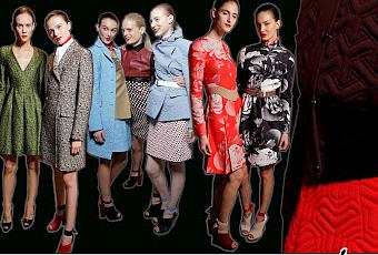 Forse un pò sottotono Jonathan Saunders o forse solo bisognoso di un linguaggio più raffinato. Marrone, lilla, verde e rosso per capi quasi da golf con gonne a pieghe, top sleeveless stampati con motivi geometrici e maglioni a righe. Via i colori acidi, rimane un rosso intenso ma scuro che mette a nudo la "stampa matelassé" ed un celeste cielo delicatissimo. Non è il Saunders di sempre, manca quel piglio accattivamente che lo contraddistingue e che questa volta si riduce ad una visiera da golf, in qualche colore stinto in una stampa floreale molto japonaise e nelle camicie punteggiate di geometrismi dalla tavolozza frizzante. Meravigliosi i tessuti ma il resto è noia. Un 6 e mezzo.