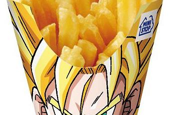 La confezione raffigura la faccia di Goku Super Sayan e le patatine faranno da capelli. Abbastanza grottesco che un fast food abbia dimostrato più fantasia degli sceneggiatori di DB.