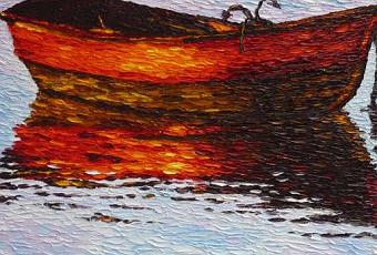 Lucia Sandroni: E dolcemente ondeggiare nel rosso tramonto – (olio su tela 50×70 tecnica a spatola)