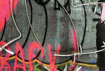 Orecchini argentati realizzati completamente a mano, con grande cuore martellato e decorato con elementi che ricordano il filo spinato, per donne dagli amori combattuti! (sullo sfondo una foto di Bash Back, da Vanity Fair)