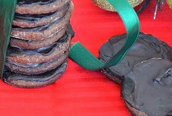 Con l'aiuto di un cucchiaino posizionare il cioccolato fuso sui biscotti lasciare solidificare.