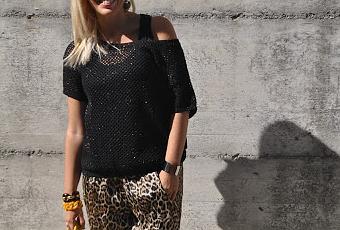 From some time I discovered that I really like the leopard, in this outfit I wear a pair of baggy pants and comfy with this print that I decided to combine a black tank top and a knitted net.Shoes and accessories in shades of brown except for the bag .. a little color never hurts ..!