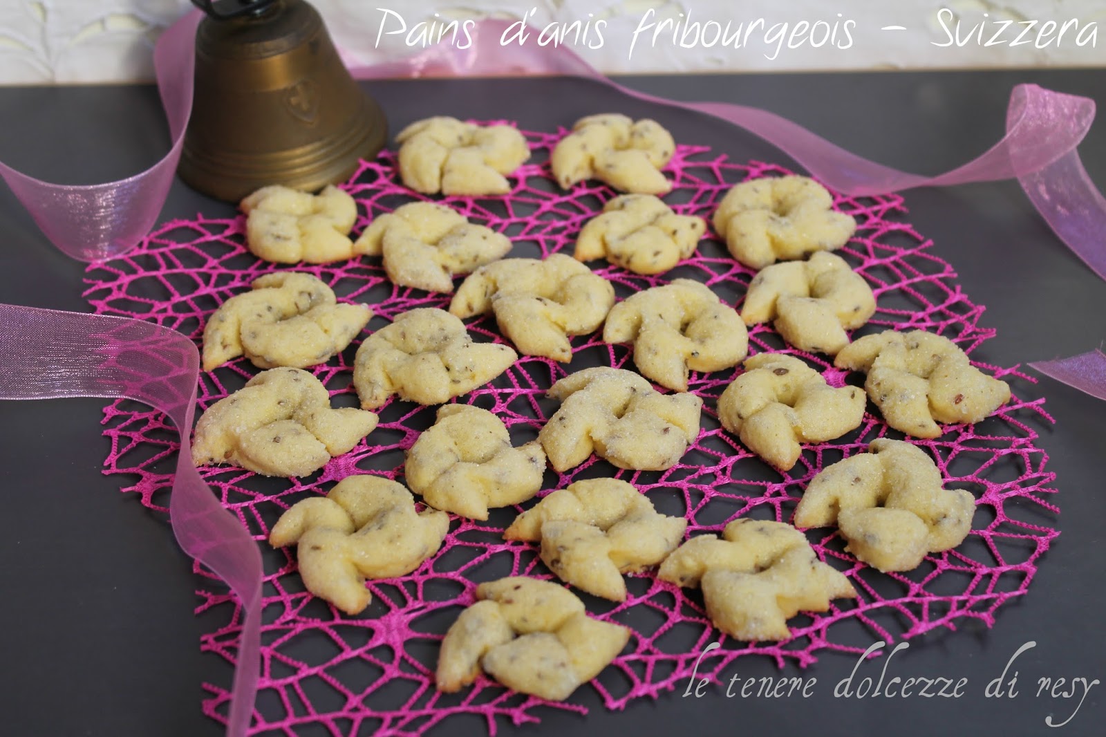 I primi che ho voluto preparare sono dei biscotti con anice tipici del Cantone di Friburgo, appunto "les pains d'anis fribourgeois" che si differenziano da quelli prodotti in altre regioni del paese in quanto più morbidi grazie alla presenza di burro ed ammoniaca.