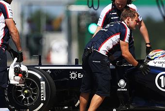 Il pilota venezuelano nel corso della prima sessione di prove libere è stato costretto a parcheggiare la sua FW35 ai bordi della pista dopo essere andato fuori pista.
