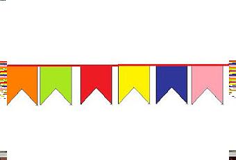 Si acquista un libretto, di fumetti, o un libretto da colorare (andrà fatto colorare ai bambini), oppure si disegnano delle lettere (magari si scrive Buon Compleanno, ecc), di formato A4, o anche di più, si ritaglia un cartoncino e seguendo il cartoncino si ritagliano le varie pagine, fino ad ottenere tante pagine ritagliate, che andranno unite con un nastro colorato. Tra una bandierina e l'altra si può mettere una girandola.