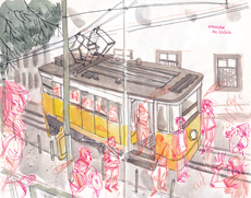 L'autrice ci racconta inoltre della sua esperienza con il gruppo di urban sketchers di cui fa parte e mostra gli schizzi effettuati durante i workshop del laboratorio itinerante, portandoci ancora di più in contatto con la realtà quotidiana della vita lisbonese.