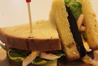 Sandwich di panettone al pollo e yogurt allo zafferano