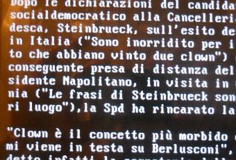 “Sono inoorridito per il fatto che abbiano vinto due clown” ha dichiarato Steinbrueck, il candidato socialdemocratico alla cancelleria tedesca. Napolitano ha preso le distanze, a favore di Berlusconi e Grillo, in difesa dell’onore del popolo italiano (?!?), e la Spd ha rincarato la dose: “clown è il concetto più morbido che mi viene in testa su Berlusconi” ha affermato la segretaria della Spd, il partito socialdemocratico tedesco, Nahless. L’immagine dell’Italia all’estero!